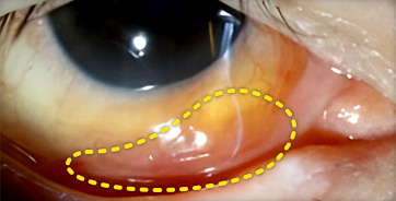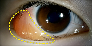 눈동자와 눈꺼풀 사이가 부어오른 것처럼 눈꺼풀을 덮이는 것이 특징으로, 눈이 자주 시리고 이물감이 느껴지며